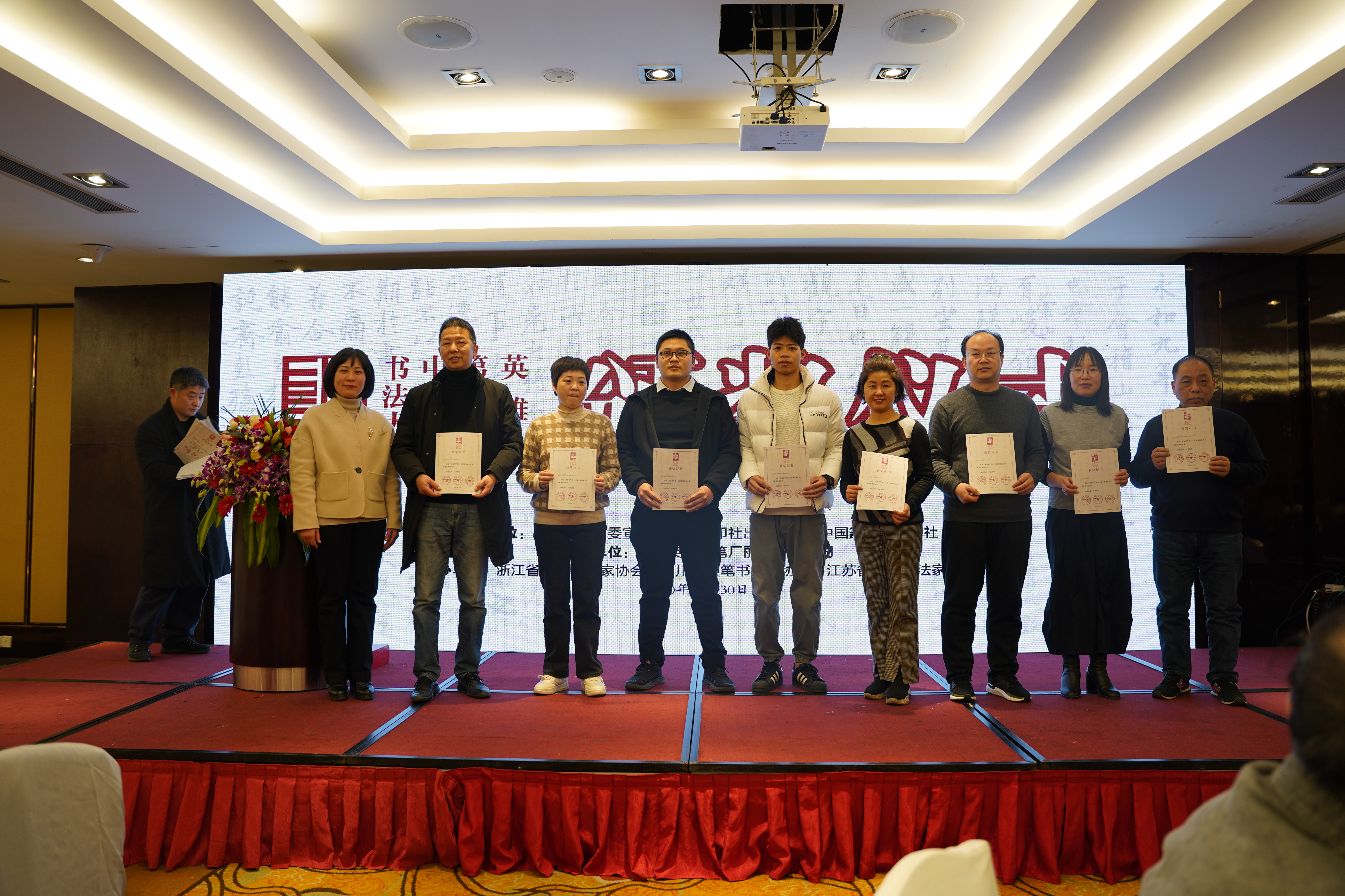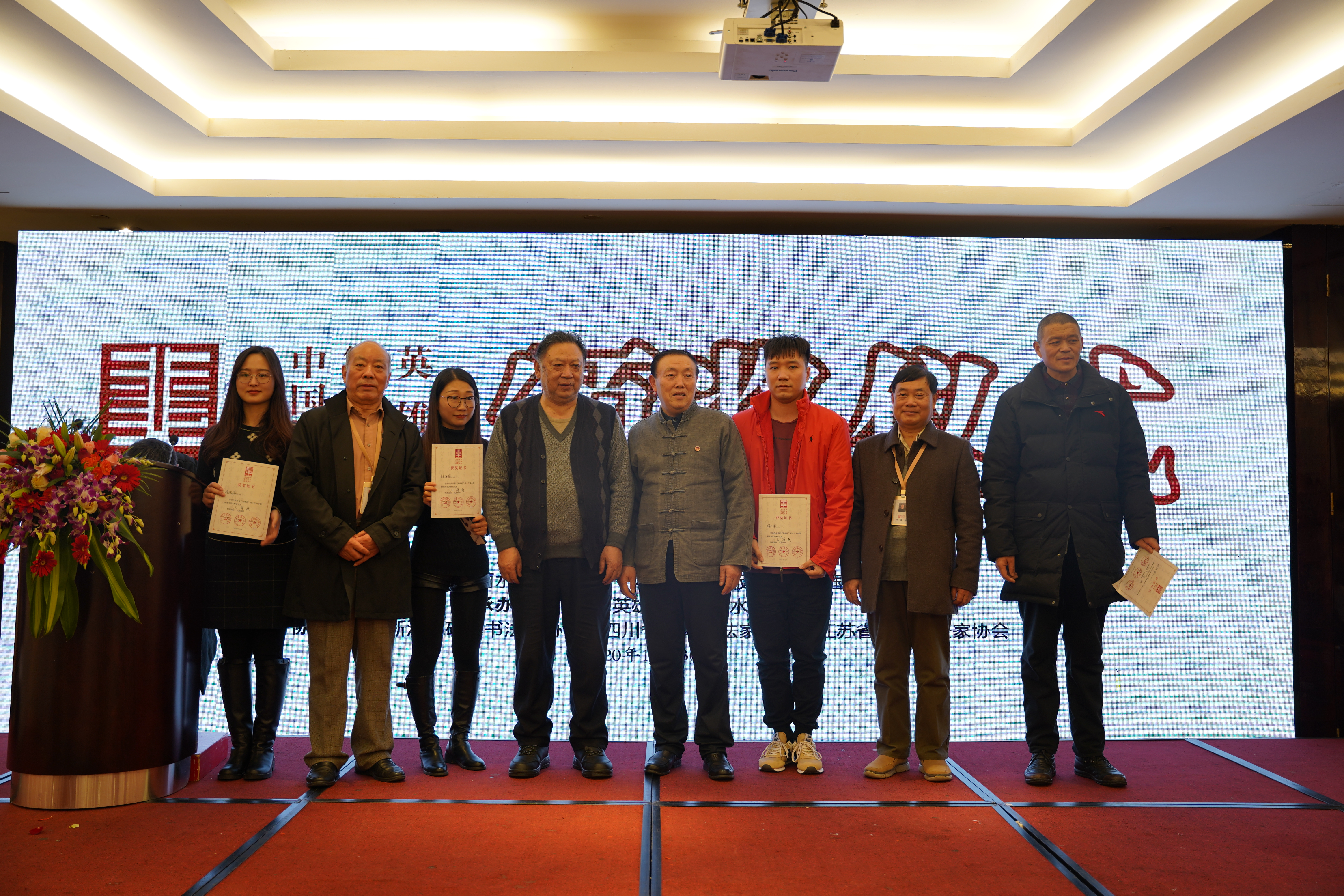 在本次颁奖大会上,中共丽水市委常委、宣传部部长任淑女,丽水市中级人民法院党组书记、院长蒋卫宇,作为颁奖嘉宾出席了颁奖大会。大会由丽水经济技术开发区管委会党工委委员、副主任张尚军致欢迎词,上海英雄(集团)有限公司常务副总经理金雷进行致辞。西泠印社出版社社长、浙江省人民政府参事江吟,《中国篆刻》杂志主编张球,代表主办方发言。丽水实验学校副校长沈彩群作为教育部书法教育特色学校代表出席了颁奖大会。书法泰斗庞中华、田英章、骆恒光、赵彦良、卢中南、高惠敏、任平等大家发来贺电和手写贺词,并对本次大赛做出了高度评价。来自全国各地的参赛获奖代表出席了颁奖大会。