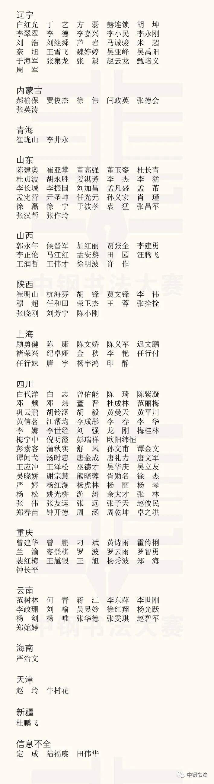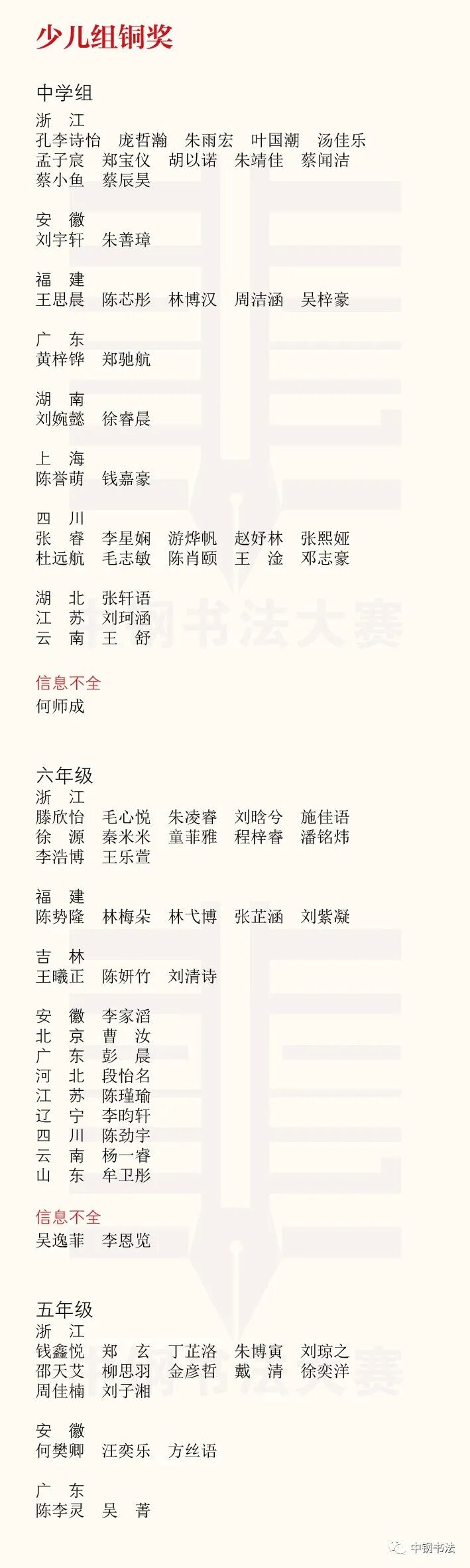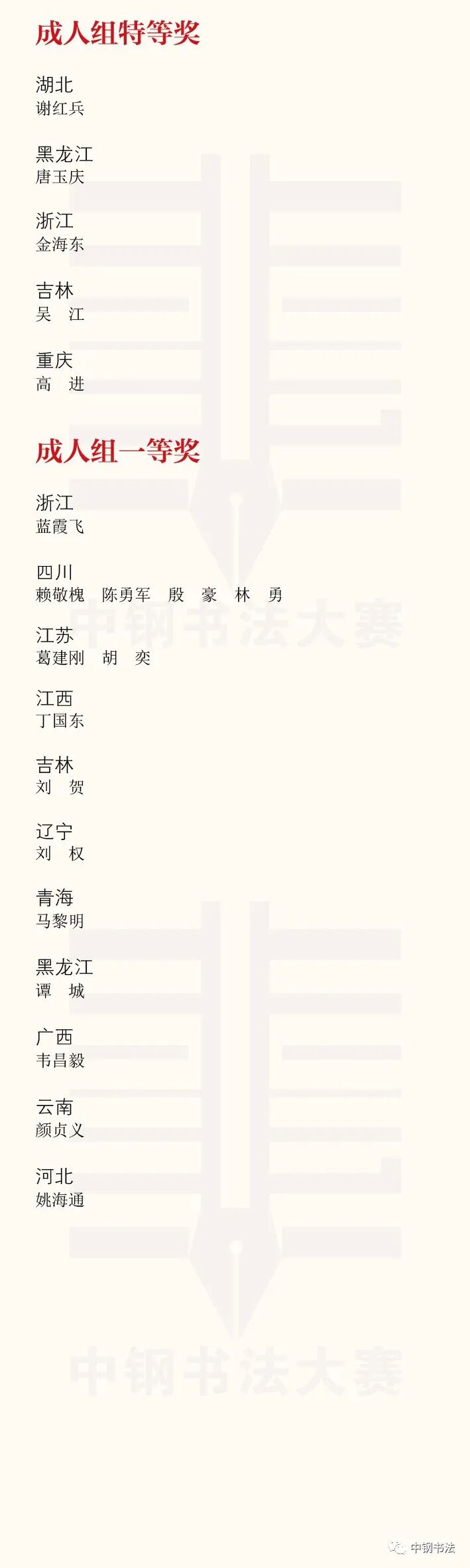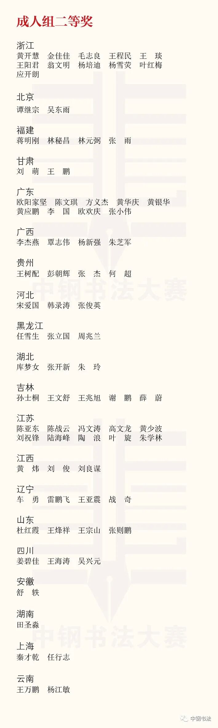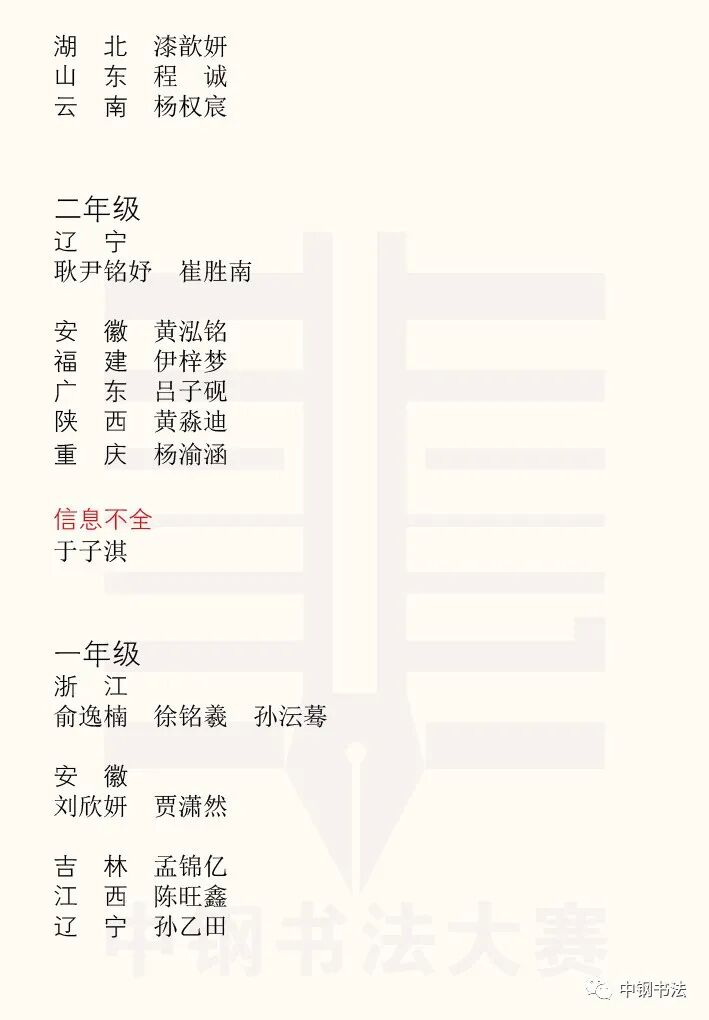 “英雄杯”第十五届中国钢笔书法大赛作品获奖名单