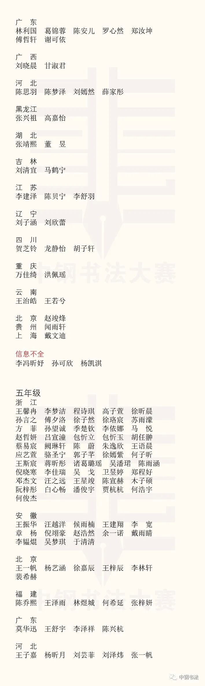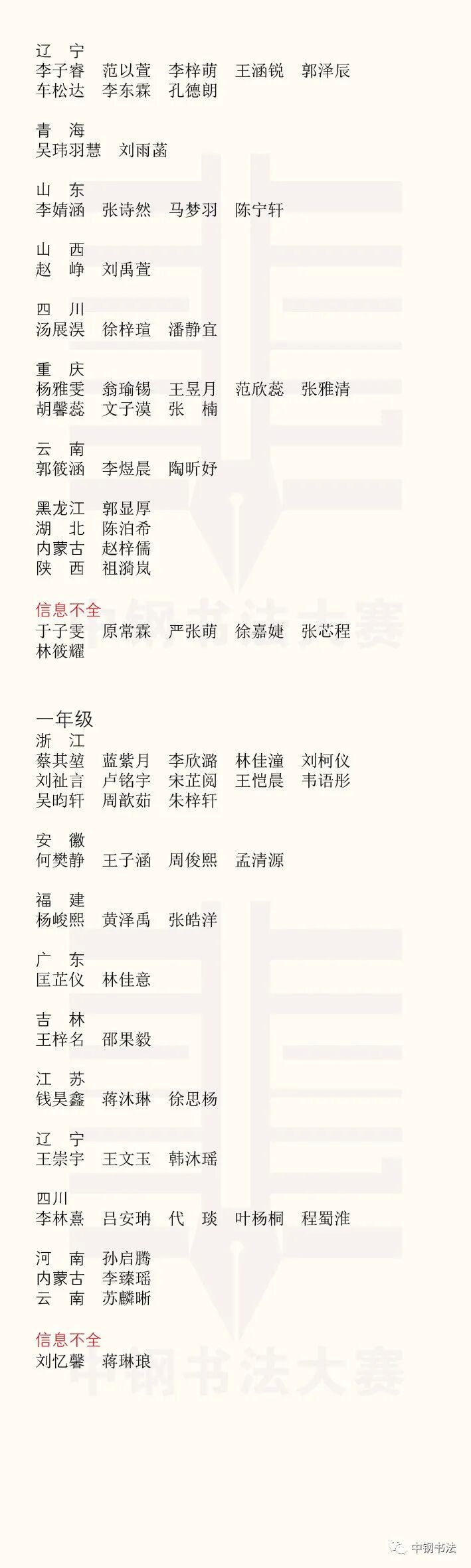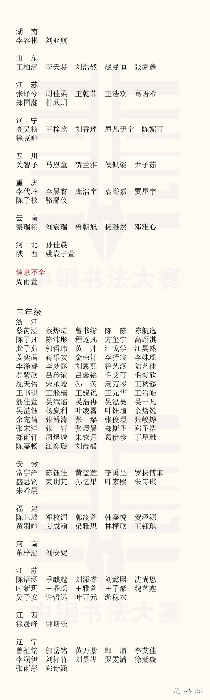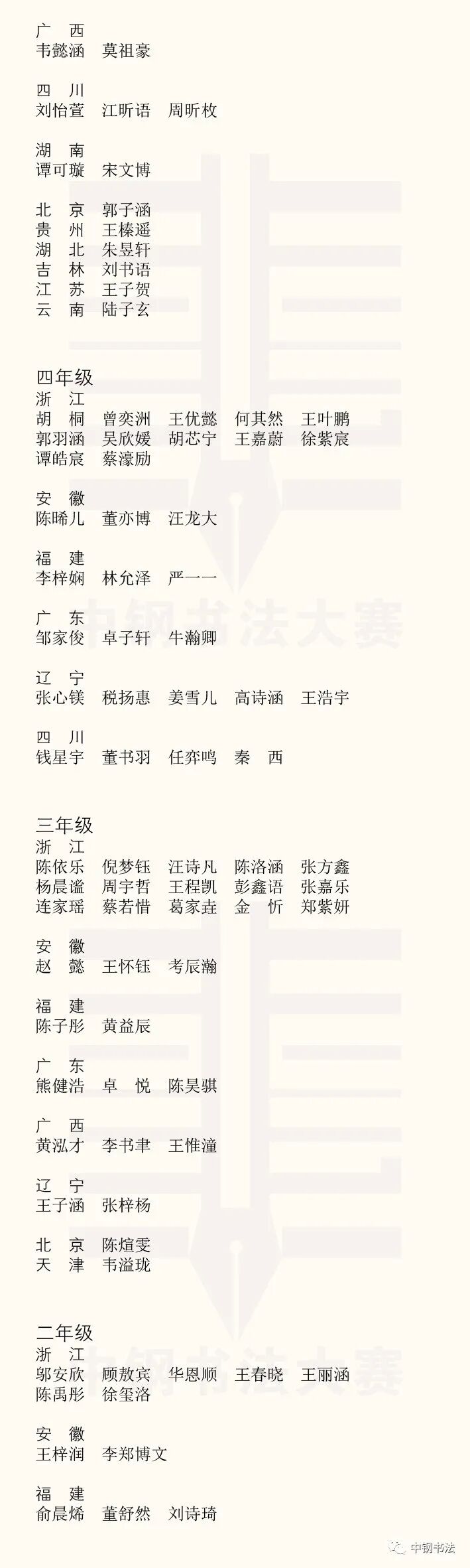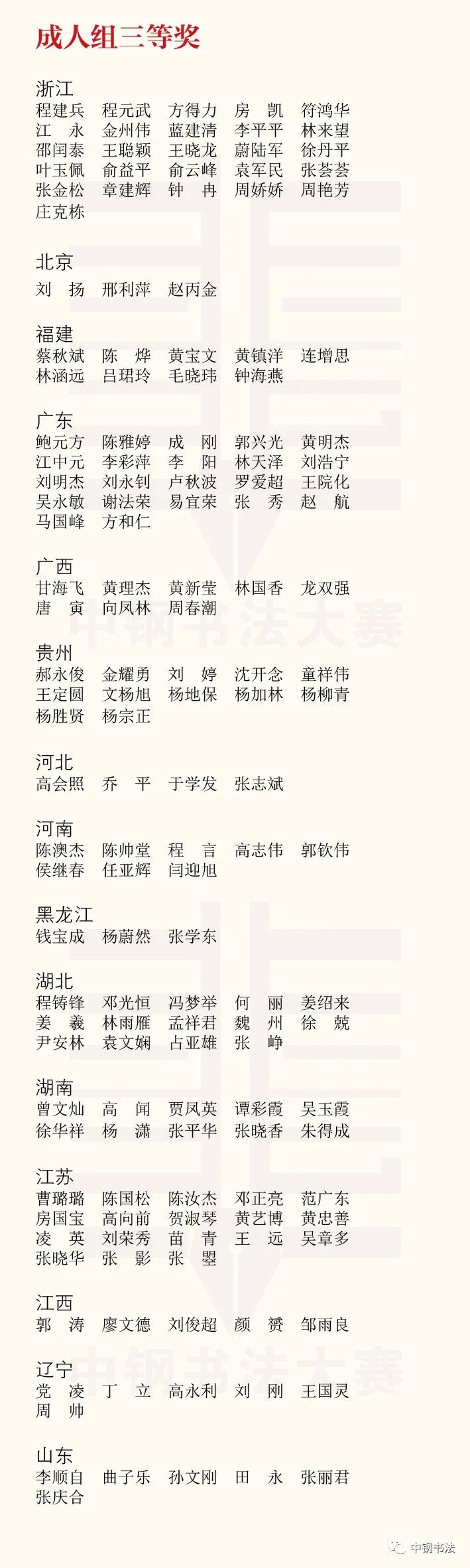 “英雄杯”第十五届中国钢笔书法大赛作品获奖名单