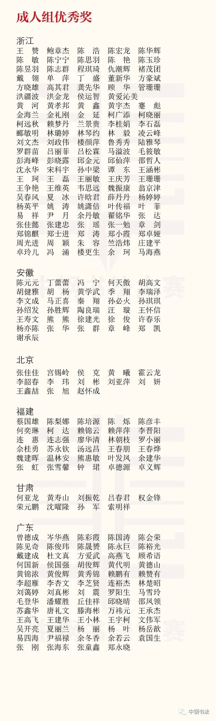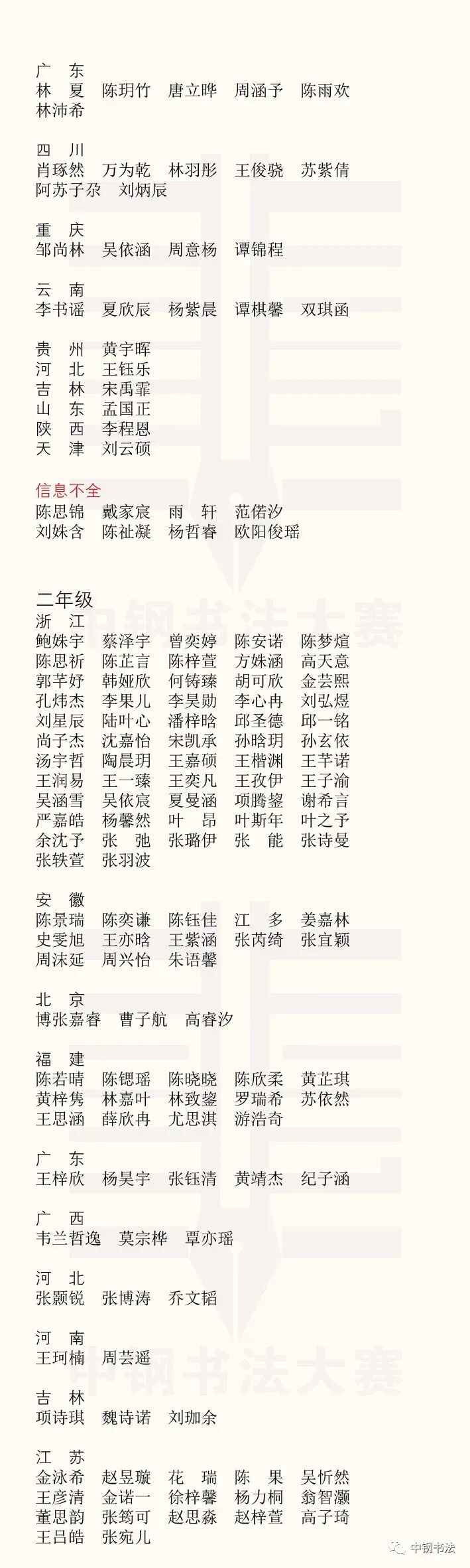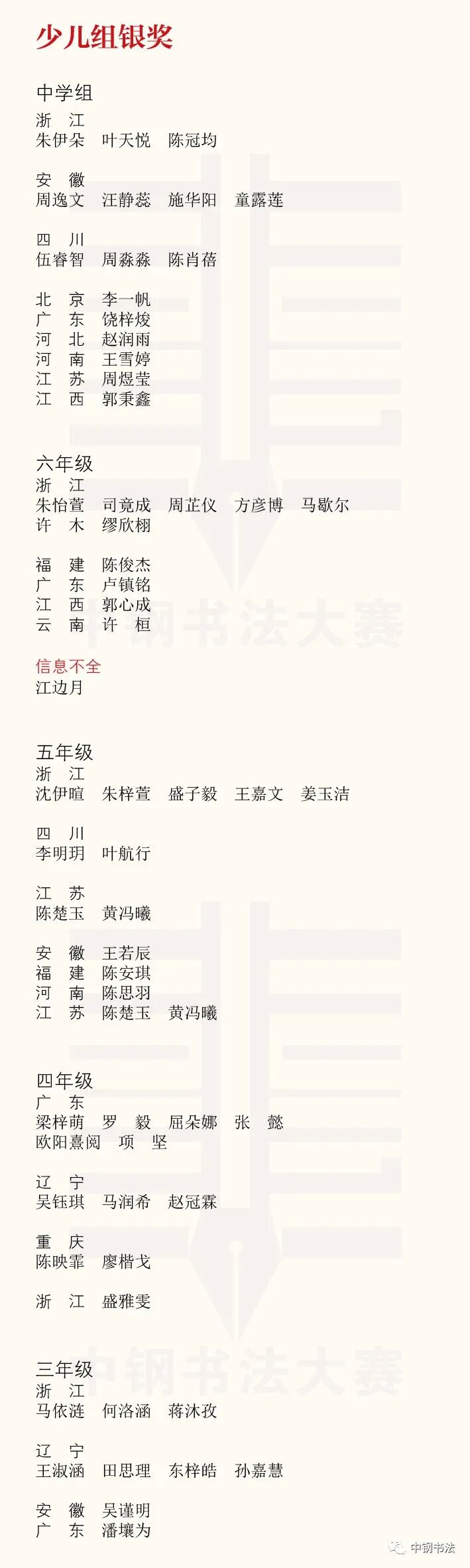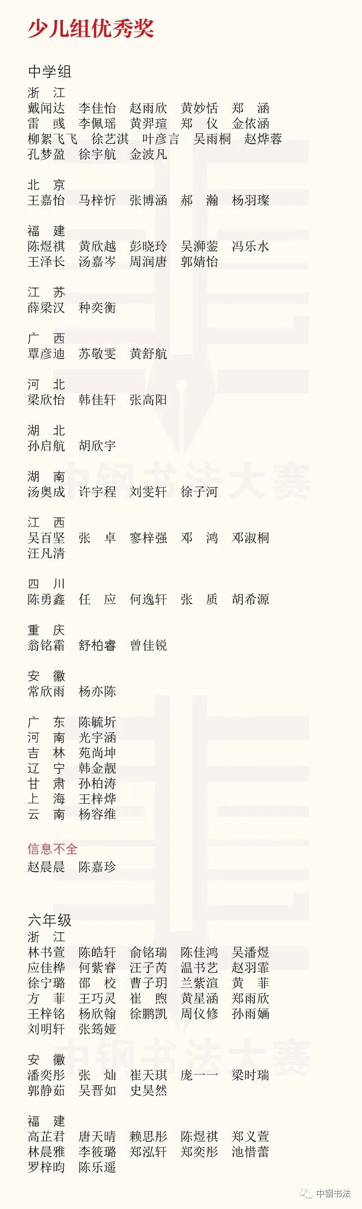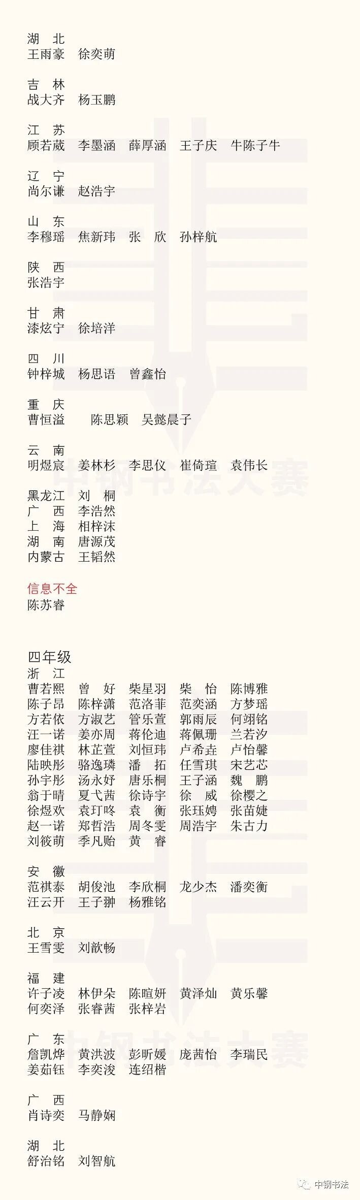 “英雄杯”第十五届中国钢笔书法大赛作品获奖名单