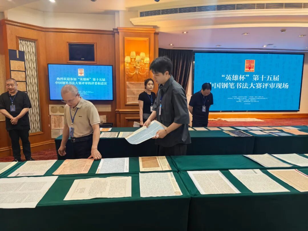点击蓝字关注我们“英雄杯”第15届中国钢笔书法大赛评审终评在上海举行8月30日至8月31日“英雄杯”第15届中国钢笔书法大赛评审终评在上海中环国际酒店圆满完成。本次大赛由西泠印社出版社、上海英雄(集团)有限公司共同主办,浙江省硬笔书法家协会、上海英雄集团文化用品销售有限公司协办,由《书法报·硬笔书法》提供媒体支持,上海英雄金笔厂丽水有限公司承办。参加本次大赛评审终评的专家有上海中华书画协会副会长、原《写字》杂志副总编沈鸿根,中国硬笔书法协会创会主席庞中华,中国硬笔书法协会原艺术指导顾仲安,西泠印社理事、西泠印社出版社原社长江吟,西泠印社社员、江西省书法家协会副主席杨剑,西泠印社出版社教材中心主任许晓俊,浙江省硬笔书法家协会主席王震,《书法报》副总编、《书法报·硬笔书法》主编严海南等专家组成。左右滑动大赛评审通过初评、复评、终评三个阶段。本次评审终评采用先两轮投反对票淘汰评出优秀作品奖和三等奖,后两轮投赞成票评出特等奖、一等奖和二等奖的评审机制,尽可能避免了拉票的现象,有效维护了评审的公平公正。大赛终评评出特等奖5名,一等奖15名,二等奖80名,三等奖150名,优秀作品奖若干。具体获奖名单将在《书法报·硬笔书法》等媒体进行公布。会后审评专家们应邀参观了位于上海市普陀区长风半马苏河公园的英雄文创精品馆。---END---英雄金笔网上商城