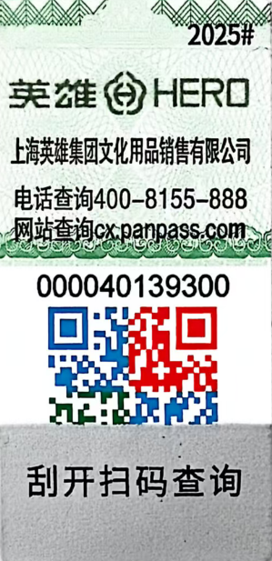 为确保“英雄”品牌优质产品的市场信誉,保证消费者的合法权益不受假冒伪劣产品的侵害,上海英雄金笔厂丽水有限公司出品的“英雄”笔产品一直以来使用防伪标签。为进一步加强防伪功能,目前开始使用上海安技物联网新出品的高科技防伪标签: